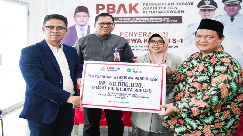 KARIMUN (Hidayatullah.or.id) – Pemerintah Kabupaten Karimun bersama BRK Syariah menyalurkan bantuan beasiswa pendidikan bagi mahasiswa Sekolah Tinggi Ilmu Tarbiyah (STIT) Mumtaz Karimun.