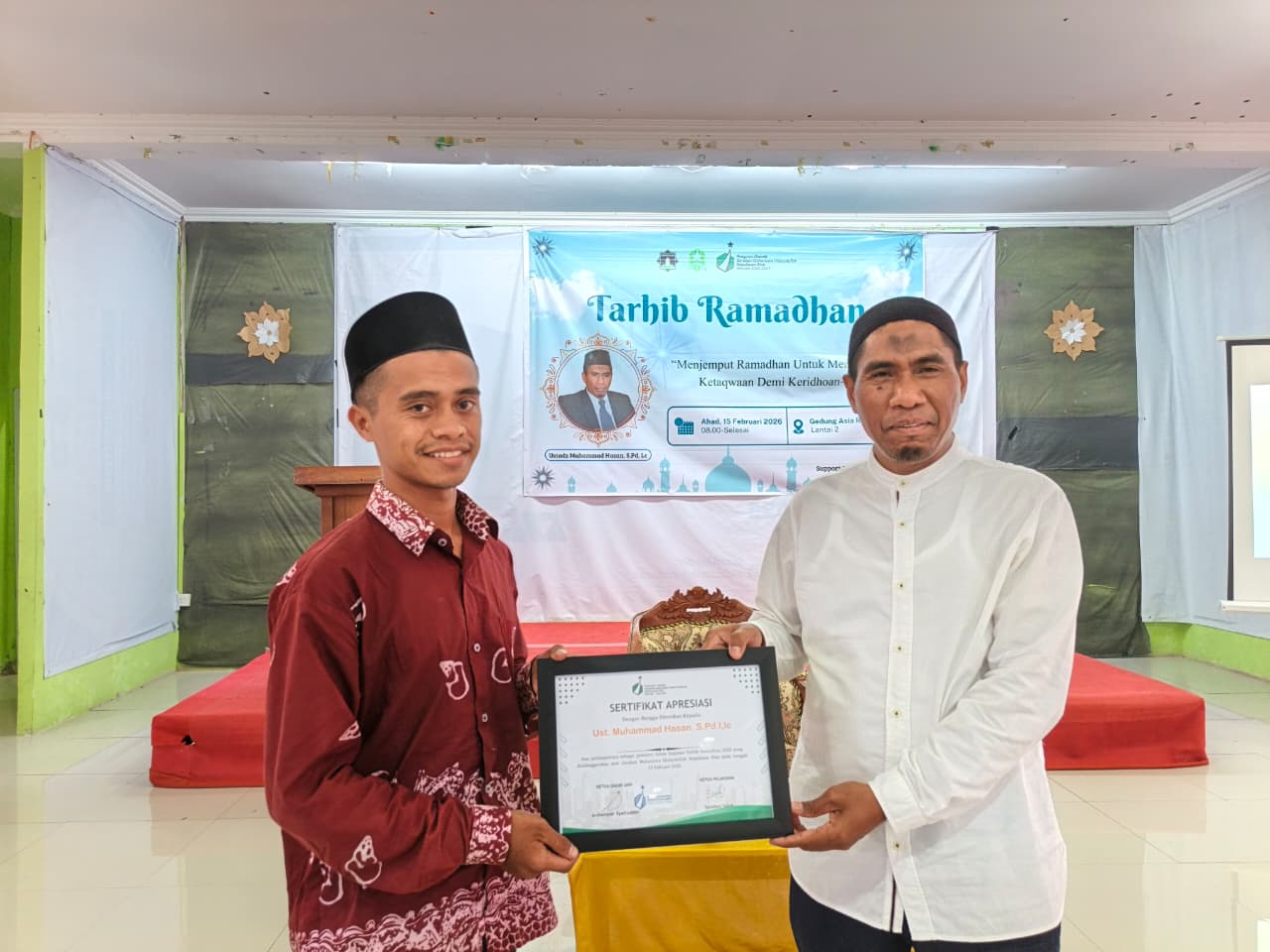 Kegiatan Tarhib Ramadhan tersebut menghadirkan Ketua Departemen Dakwah dan Pelayanan Umat Yayasan Pondok Pesantren Hidayatullah, Ustadz Muhammad Hasan, S.Pd.I., Lc., sebagai pemateri utama. Kehadiran narasumber dari unsur lembaga dakwah tersebut menjadi bagian dari upaya memberikan penguatan nilai-nilai keislaman kepada peserta kegiatan, khususnya dalam menyambut bulan Ramadhan sebagai momentum peningkatan kualitas keimanan dan ketakwaan.