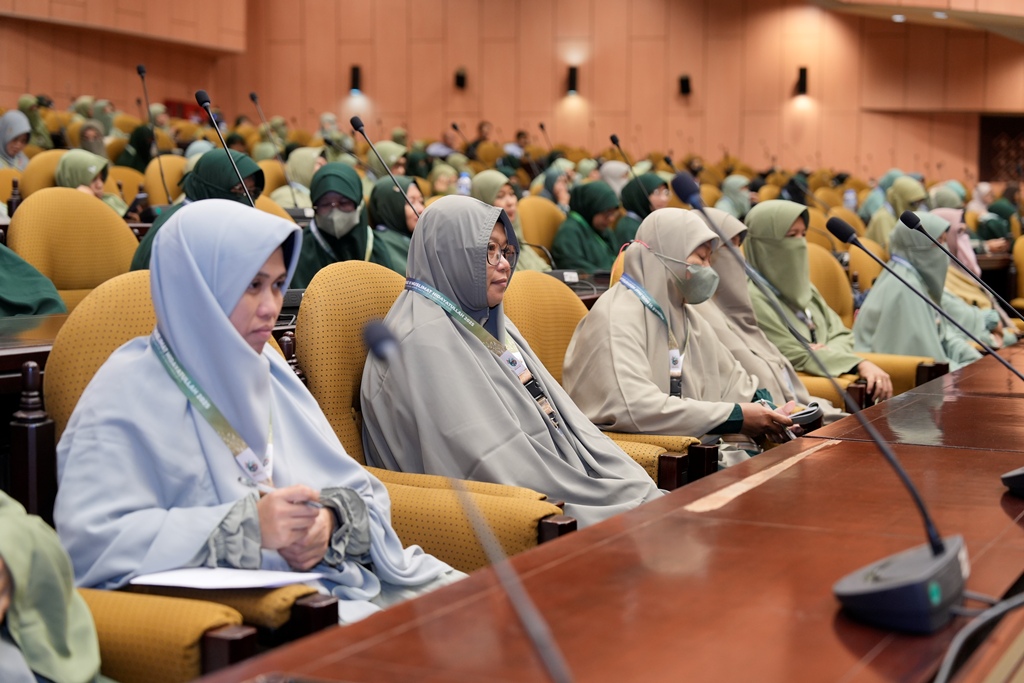 Dalam sambutannya, Ketua Umum Pengurus Pusat (PP) Mushida, Ustadzah Hani Akbar, S.Sos.I., M.Pd., menyampaikan berbagai refleksi strategis mengenai posisi, peran, dan arah gerakan perempuan dalam organisasi.