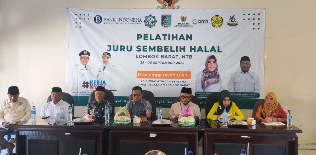Panita acara H. Kholid Zuhri, M.Pd., yang juga Ketua LSH Hidayatullah NTB, menyampaikan bahwa kegiatan ini menandai langkah penting dalam penguatan kapasitas juru sembelih halal di Lombok Barat, dengan melibatkan kolaborasi antara lembaga keagamaan, pemerintah daerah, dan lembaga keuangan untuk mendukung penerapan standar halal secara menyeluruh.