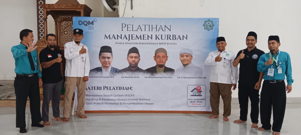 Demikian pesan utama yang digaungkan dalam Pelatihan Manajemen Qurban & Sembelihan Halal yang diselenggarakan Darul Quran Mulia (DQM) Bogor, bekerja sama dengan Lembaga Sembelih Halal (LSH) Hidayatullah, pada Senin, 28 Dzulqa’dah 1446 (26/5/2025).
