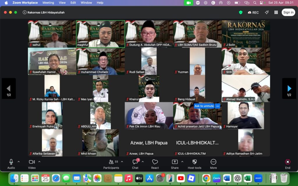 JAKARTA (Hidayatullah.or.id) — Lembaga Bantuan Hukum (LBH) Hidayatullah memperkuat positioning sebagai pemberi bantuan hukum struktural dalam Rapat Koordinasi Nasional (Rakornas) yang digelar secara hibrida dari di Pusat Dakwah Hidayatullah, Jakarta, pada Sabtu, 8 Dzulqaidah 1447 (25/4/2026).